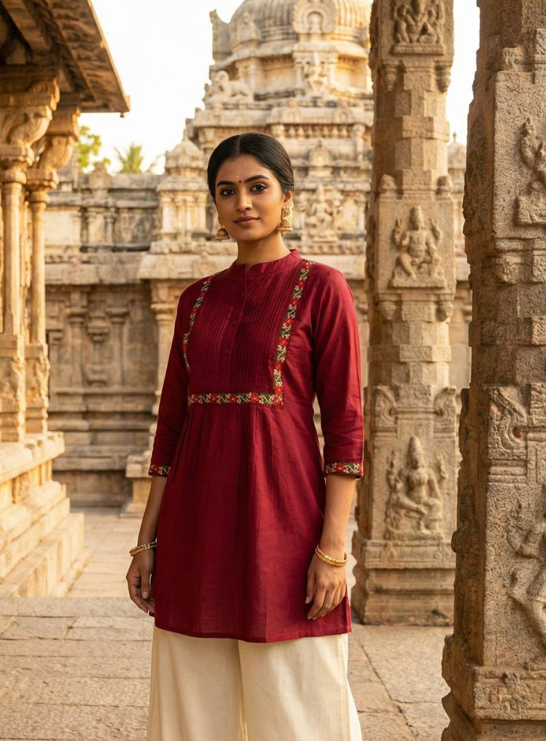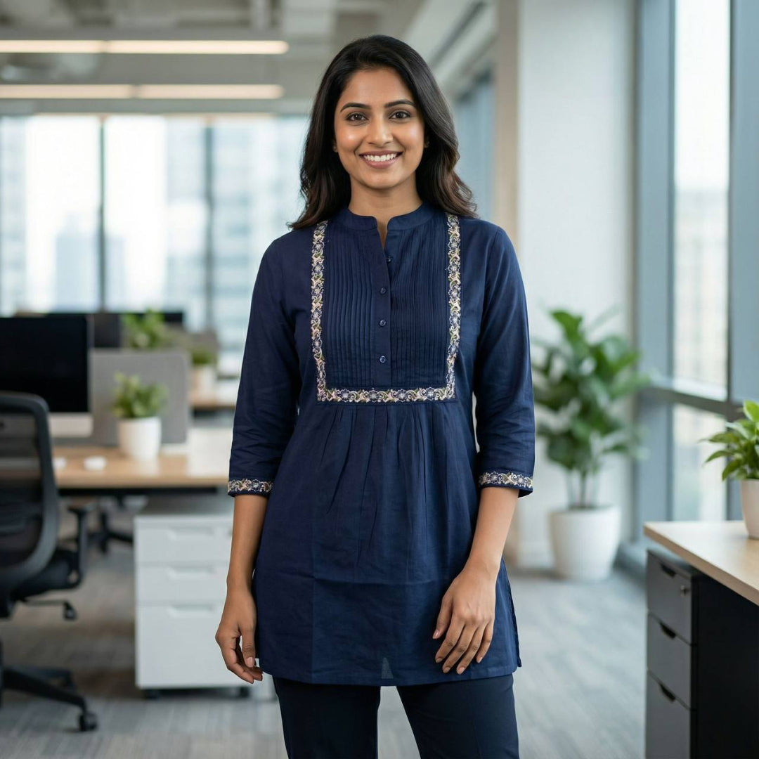 Ideal for festive functions, parties, family gatherings, office ethnic days, brunch outings, and casual celebrations, this embroidered short top lets you express your style with confidence. Pair it with statement earrings and heels for a glam look, or keep it minimal for a chic, modern vibe.