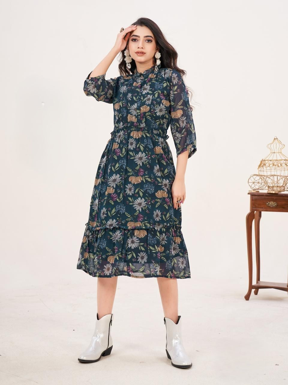 Heavy Faux Georgette Kurta Pant And Dupatta :3 piece suit(top,bottom&dupatta)