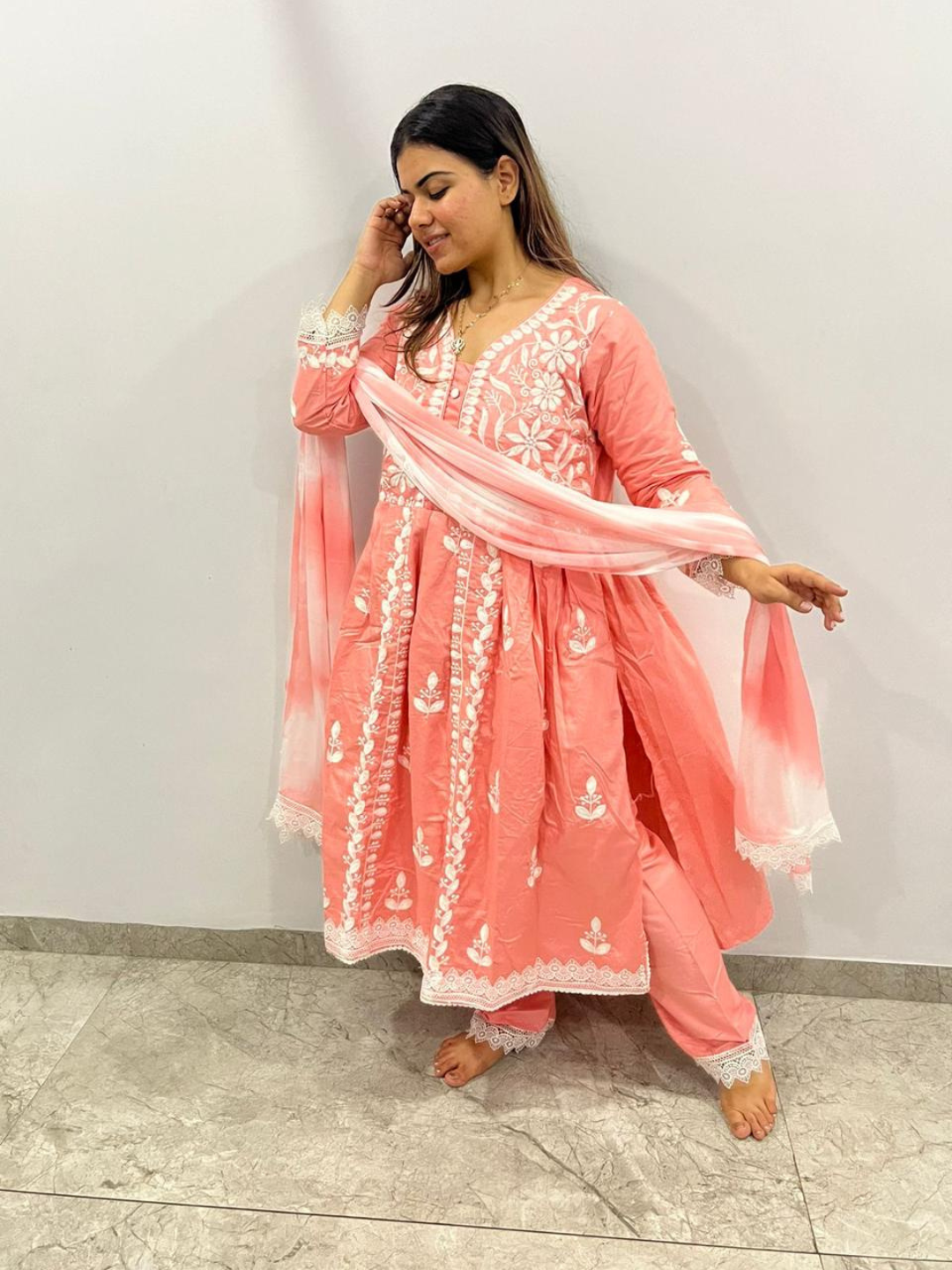 Top: Soft and breathable Rayon Cotton featuring exquisite Chikankari embroidery on the yoke, adding a graceful, hand-done touch.