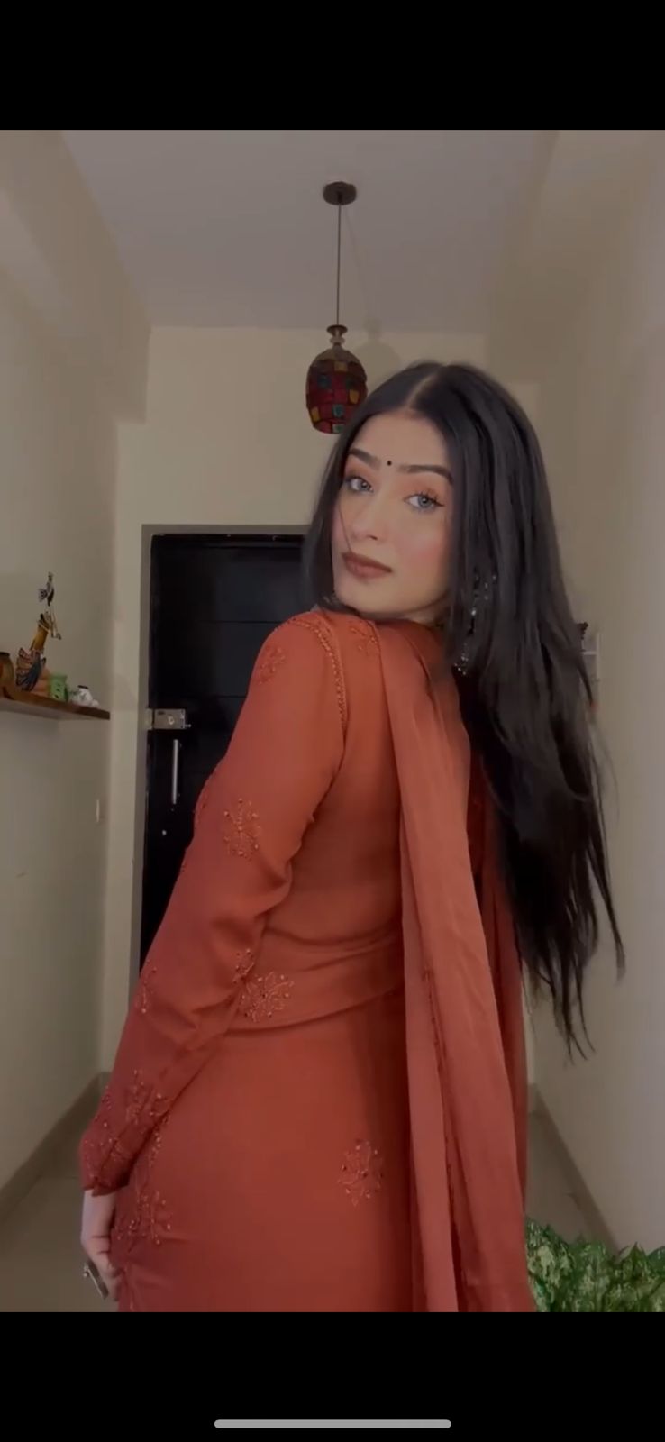 Orange Chinnon Silk Embroidered Suit :3 piece suit(top,bottom&dupatta)