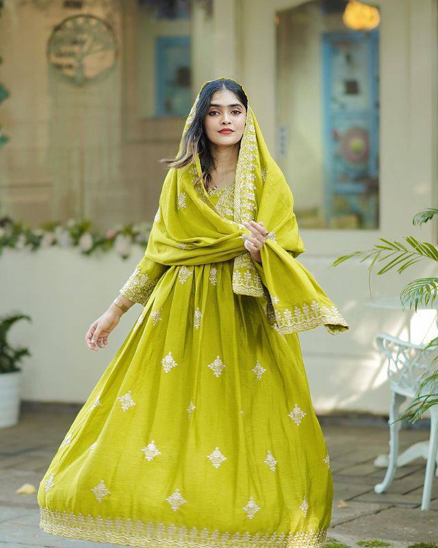 Elegant Fendy Silk Embroidered Gown with Dupatta – Party & Wedding Wear for Women