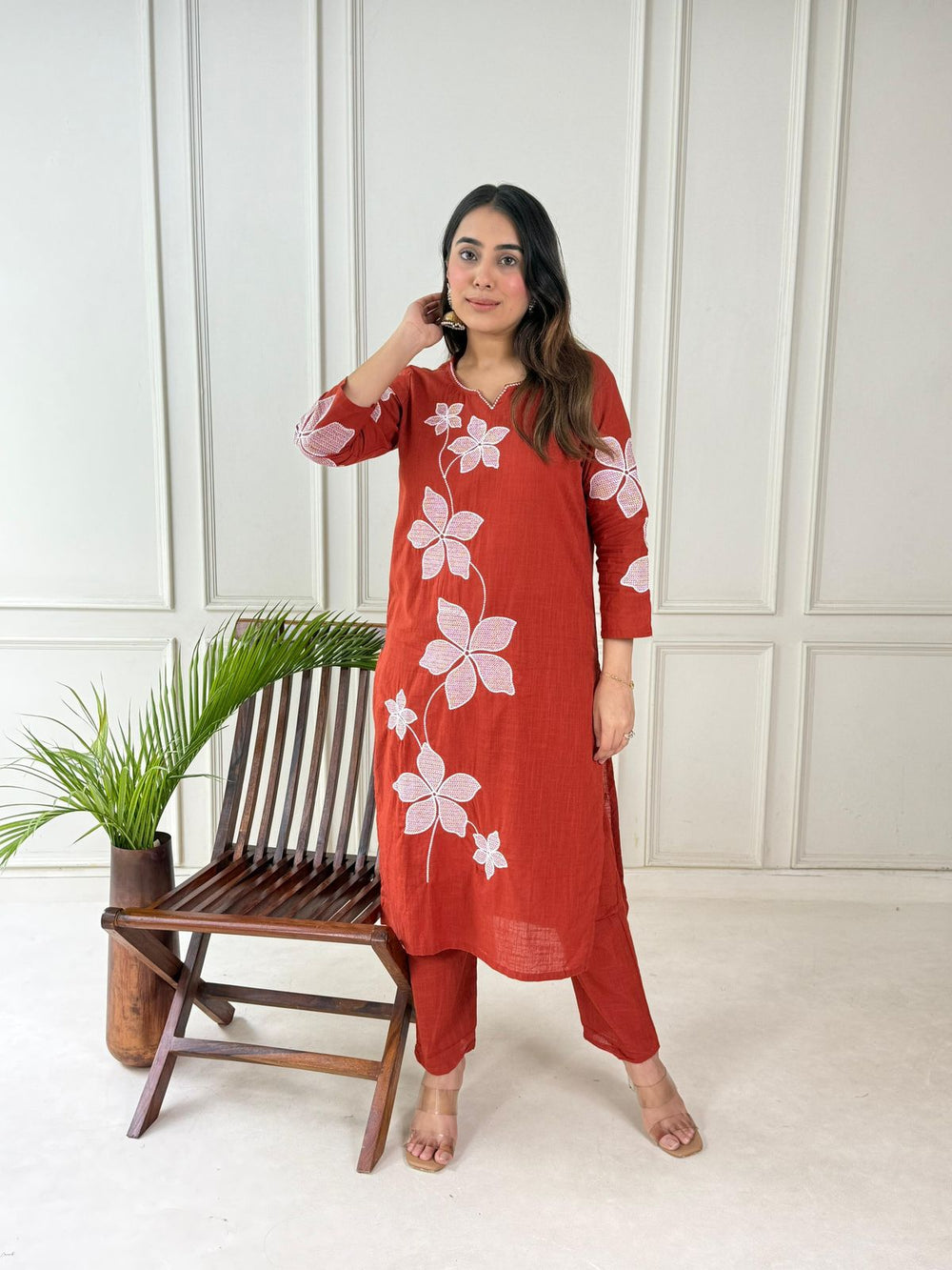 Elegant Reyon Slub Cotton Embroidered Suit Set