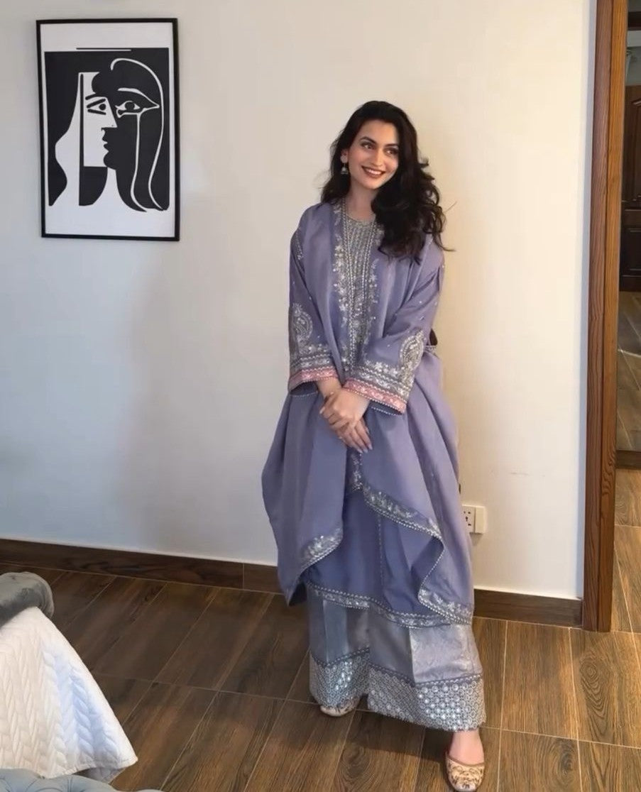 Completing the set is a 2.2-meter Roman Silk dupatta, beautifully embellished with embroidered detailing to enhance the overall elegance.